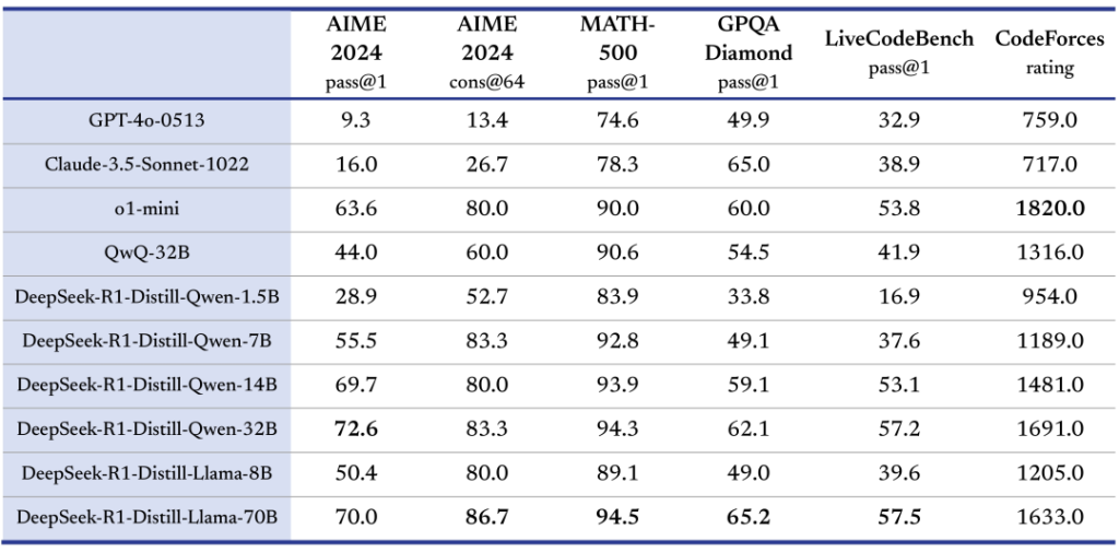 Il convient de noter un point concernant les modèles distillés : ceux-ci sont dérivés de modèles open source tiers (Qwen 2.5 d’Alibaba pour les 1.5B/7B/14B/32B, et Llama 3.x de Meta pour les 8B/70B).